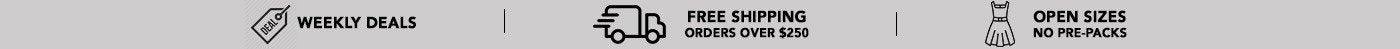 If you wish to return merchandise for whatever reason, you must send a request to info@wholesaleclothingdeals.com within 3 BUSINESS DAYS of receiving the package, according to the tracking number. ABSOLUTELY NO EXCEPTIONS WILL BE MADE.